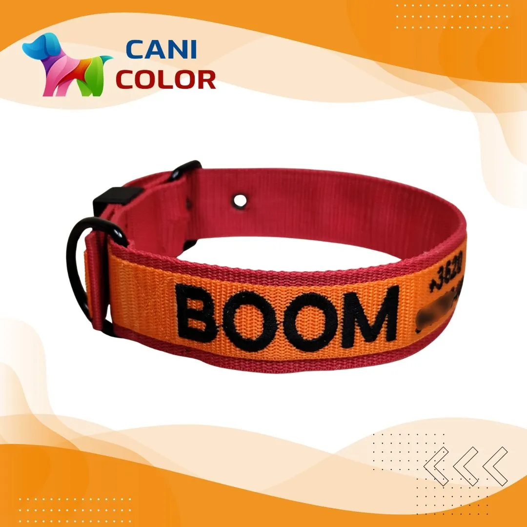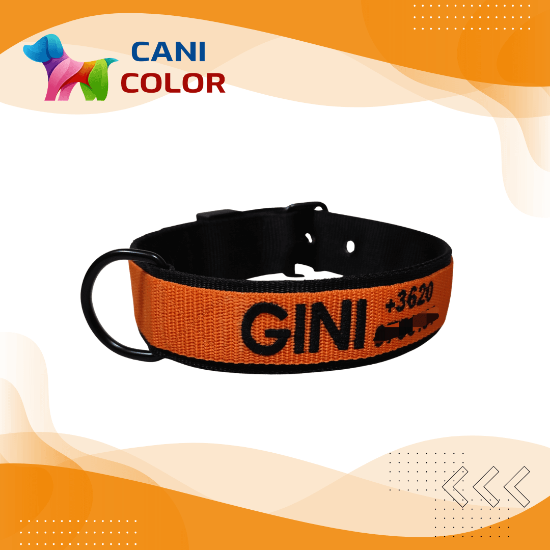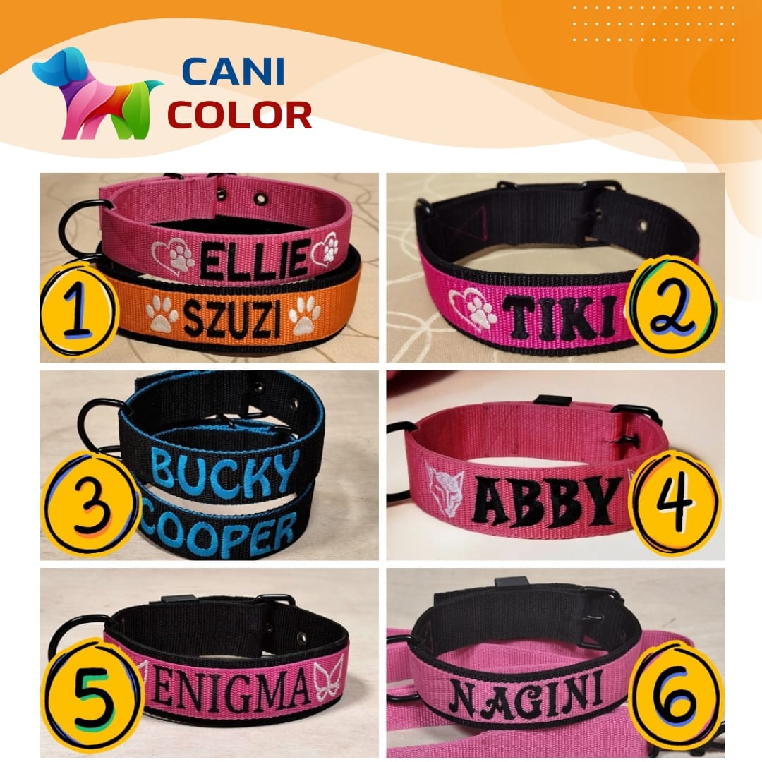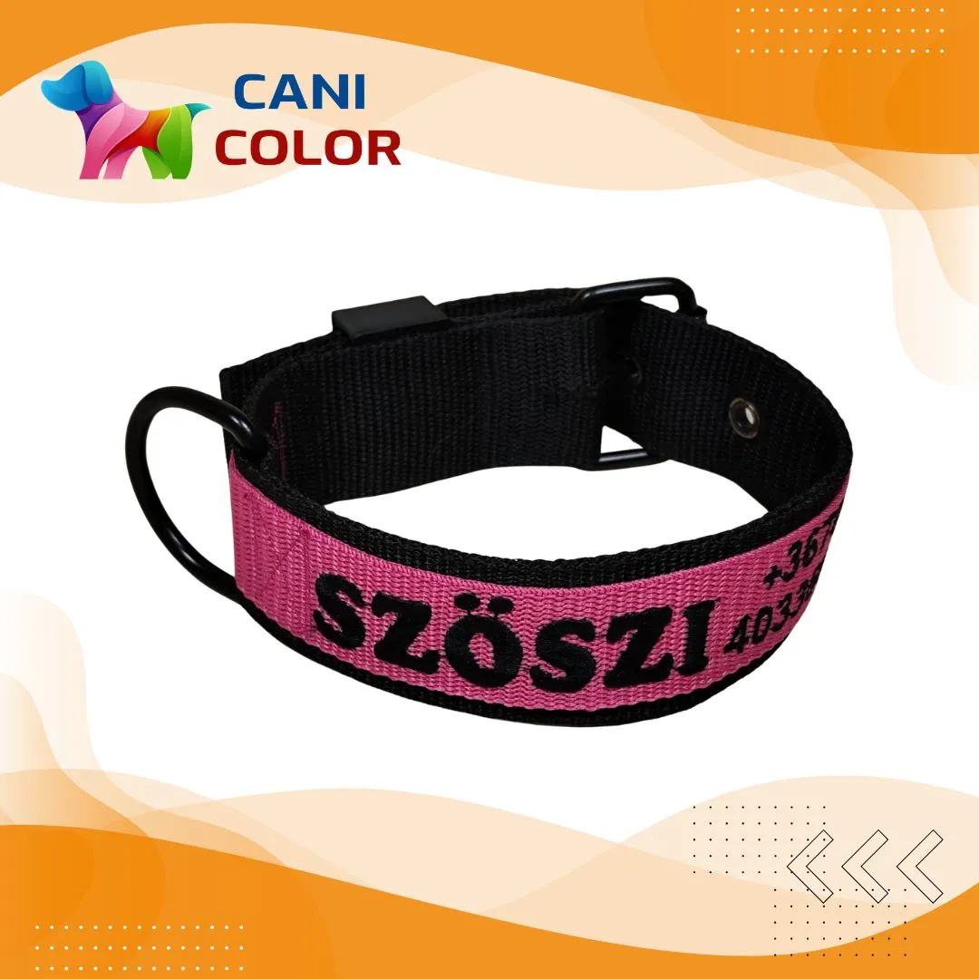 Ez a prémium minőségű egyedi nyakörv 2 réteg 4 cm széles + 1 réteg 3 cm széles polipropilén anyagból készül, amely rendkívüli tartósságot és kényelmet biztosít a mindennapi séták és tevékenységek során. A kiváló minőségű alkatrészek, valamint az egyedi, kis mennyiségű gyártás garantálja a hosszú élettartamot. A nyakörvet a rendeléskor megadott méretre készítjük el, a megadott névvel és telefonszámmal hímezve.