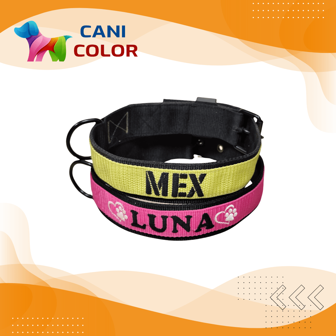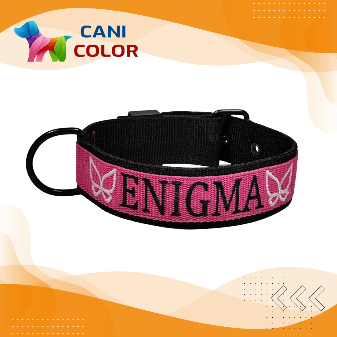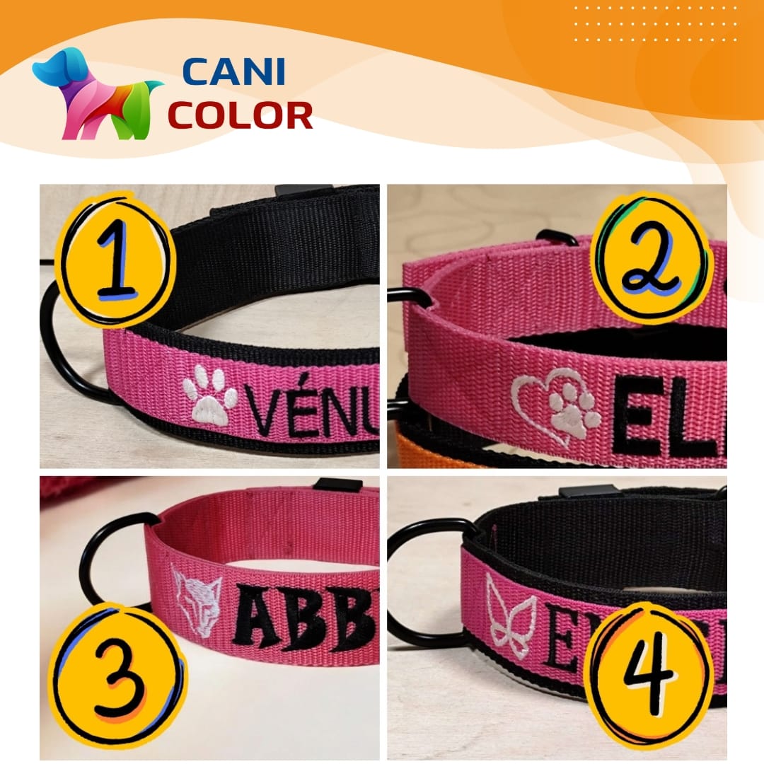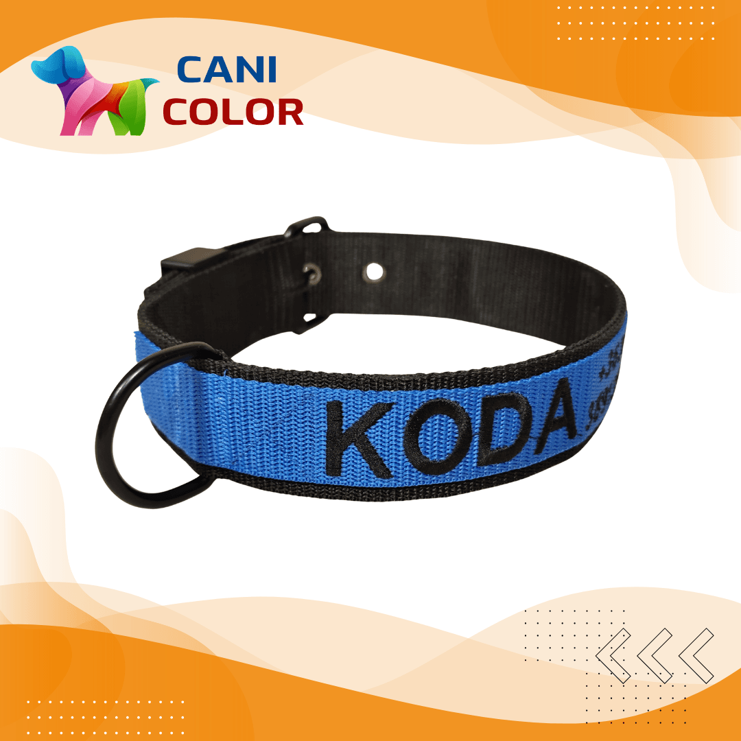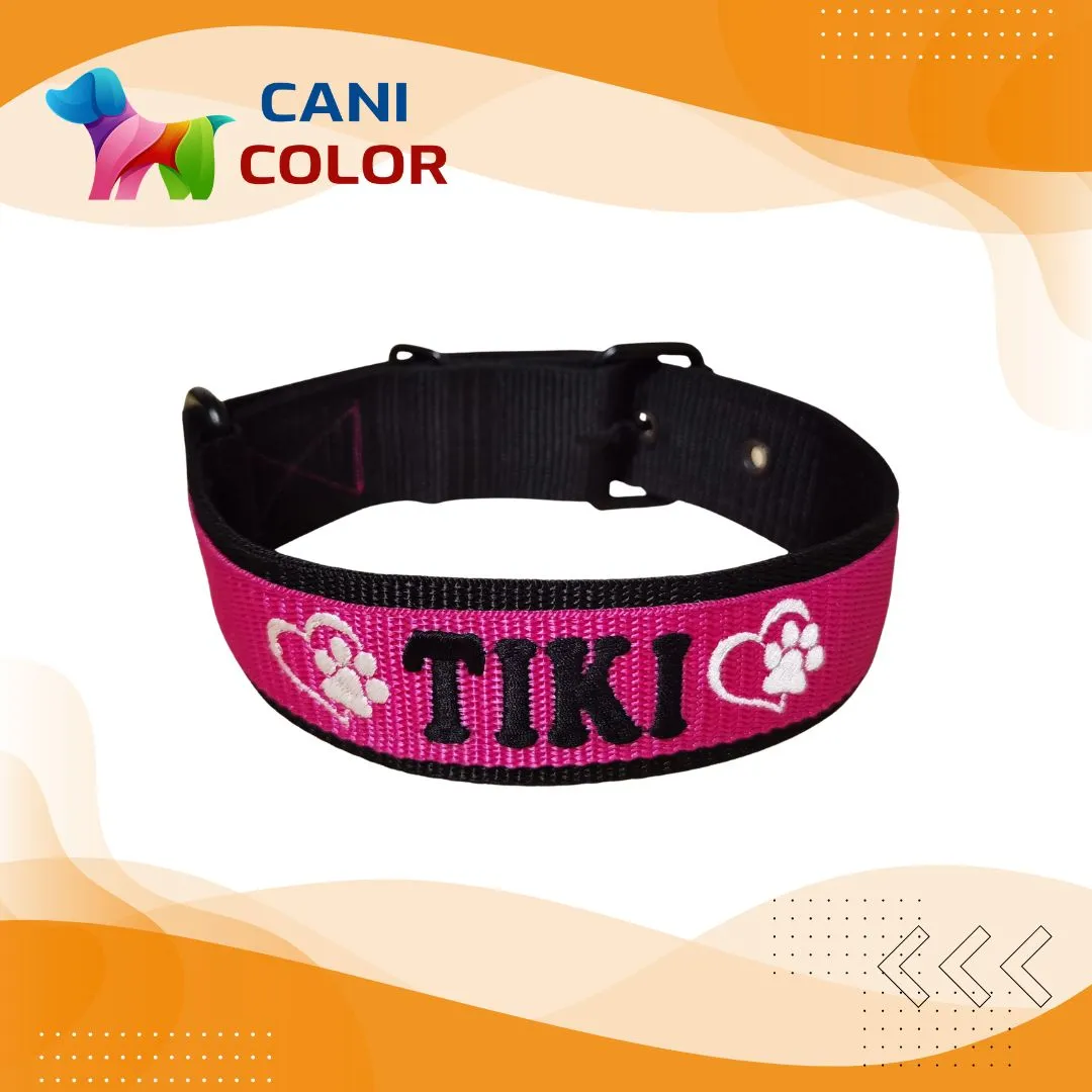 Ez a prémium minőségű egyedi nyakörv 2 réteg 4 cm széles + 1 réteg 3 cm széles polipropilén anyagból készül, amely rendkívüli tartósságot és kényelmet biztosít a mindennapi séták és tevékenységek során. A kiváló minőségű alkatrészek, valamint az egyedi, kis mennyiségű gyártás garantálja a hosszú élettartamot. A nyakörvet a rendeléskor megadott méretre készítjük el, a megadott névvel és telefonszámmal hímezve.